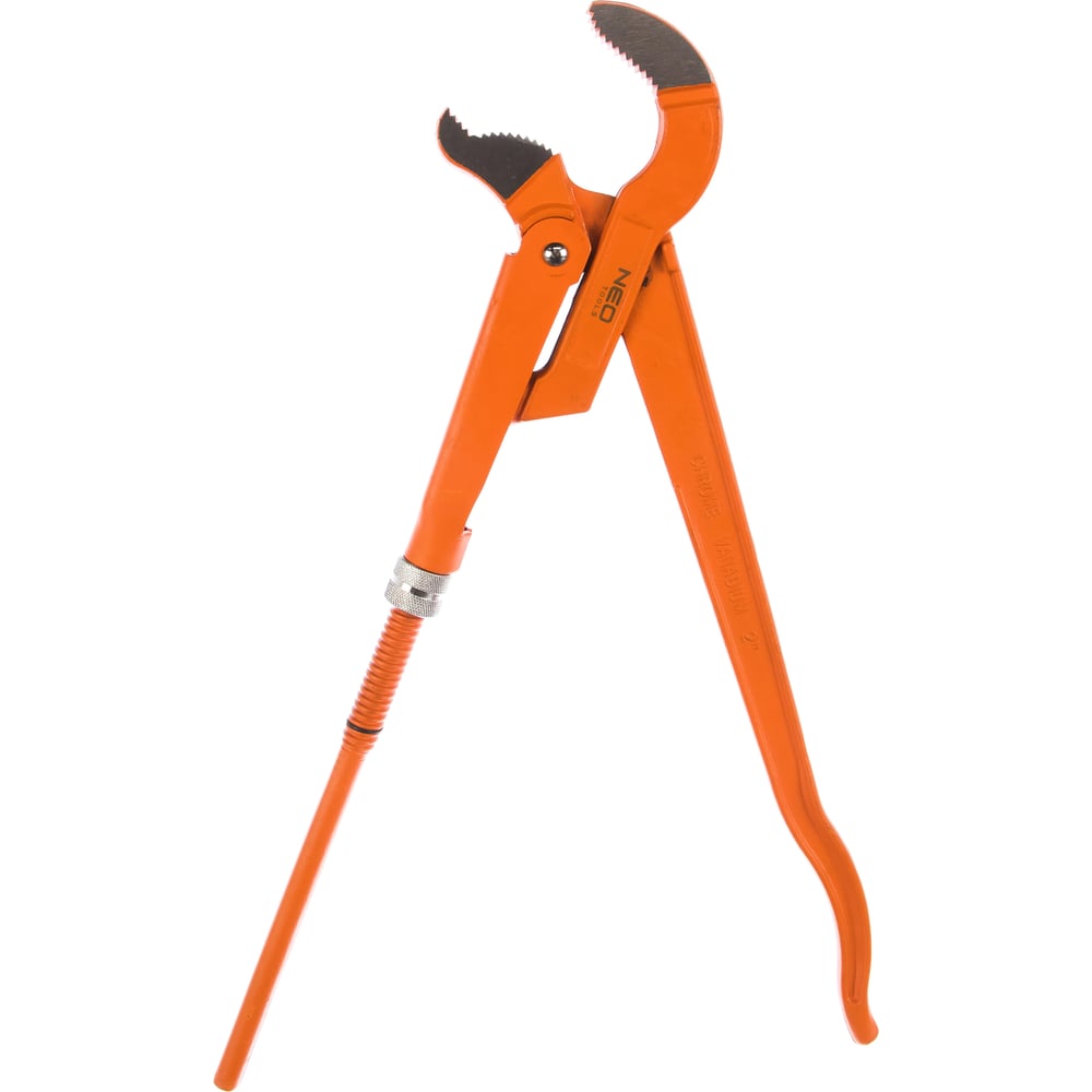 Трубный S-образный ключ (535 мм, 2) NEO 02-123 оснащен губками специальной формы, которая обеспечивает несколько точек соприкосновения с трубой. Изогнутая рукоять обеспечивает минимум  скольжения при эксплуатации инструмента.