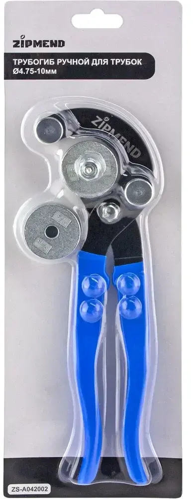 - Инструмент ZS-A042002 предназначен для гибки тонкостенных медных, алюминиевых и латунных труб диаметром от Ø4.75 до Ø10 мм.