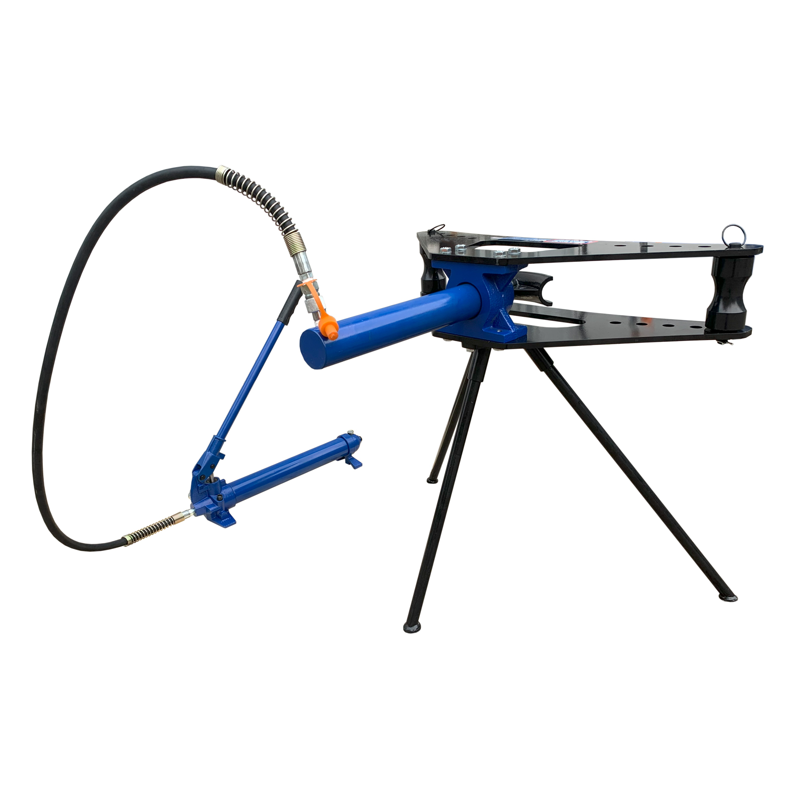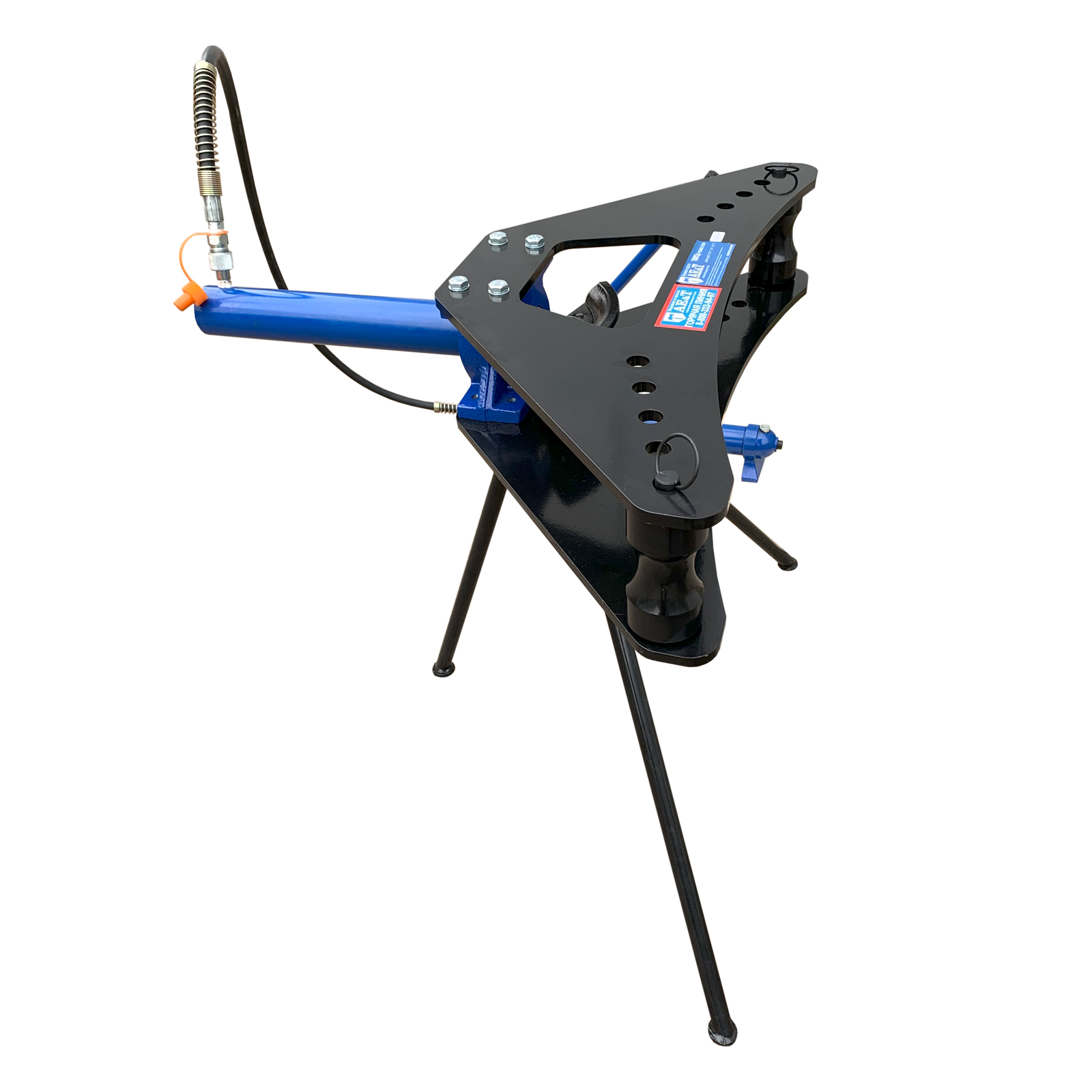 Мы разработали эту модель для того, чтобы мастера и предприятия могли заниматься гибкой труб не только в цехах и на производстве, а непосредственно в местах проведения работ — на стройплощадках, в узлах системы отопления и водопровода и т. д. Она оснащена мощными опорами, чтобы не приходилось искать крепкий верстак или рабочий стол. Гидравлический привод в данной модели универсален — для подстройки его под разный размер трубы необходимо просто поменять изгиб и пуансон, это займет считанные секунды.