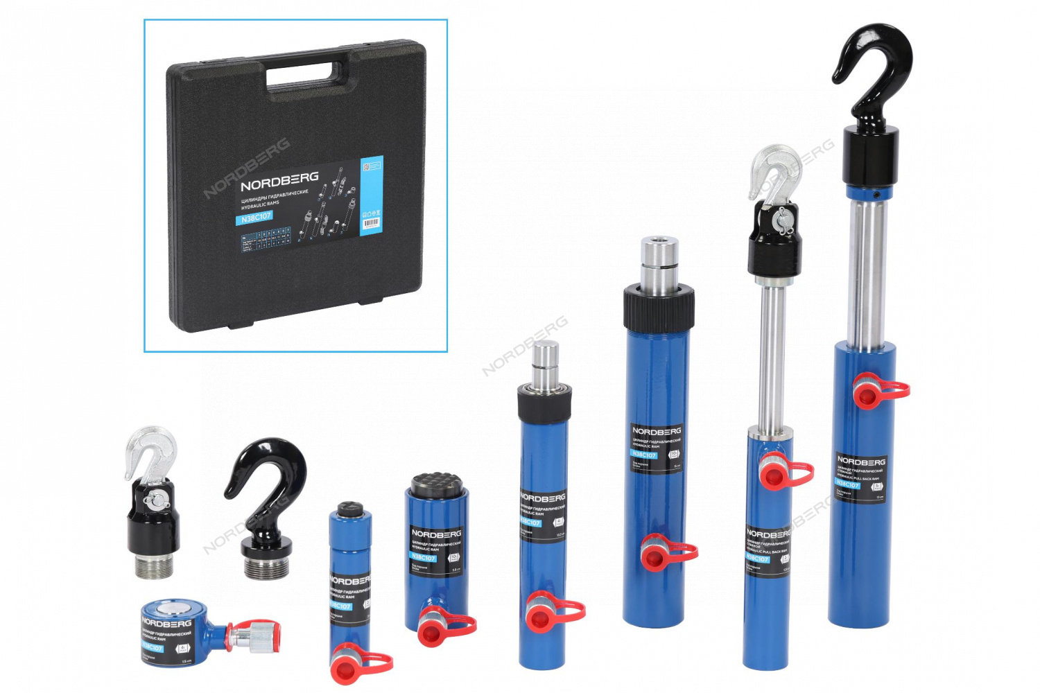 - Широкий набор цилиндров — в комплекте 7 цилиндров различного назначения (толкающие и тянущие), включая мини-цилиндры для ограниченного пространства и мощные стяжные модели;