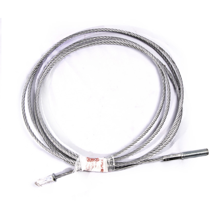 Трос подъема и синхронизации платформ. Изготовлен из прочного стального каната с металлическим сердечником, долговечен, выдерживает тяжелые нагрузки. В конструкции подъемника используется четыре троса разной длины; Длина троса: 8570мм. Диаметр троса: 9,5мм. Диаметр шпилек: 20мм. (размер ключа 29мм) Длина шпильки: 70мм.