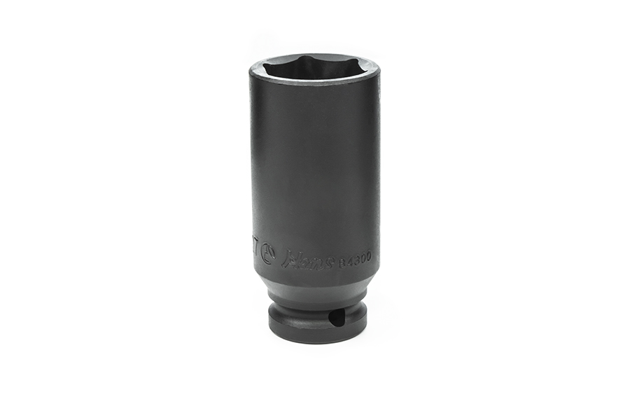 Ударная торцевая головка длинная Hans 27 мм. К ударным головкам предъявляются требования, которые резко отличаются от требований к обычным торцевым головкам. Ведь пневматический инструмент создает нагрузки совсем другого рода, а именно эти нагрузки носят ударный характер. Как следствие главным требованием к ударным головкам является, высокая ударостойкость. Именно этим обусловлено использование специального хром-молибденового сплава при их производстве. Также в качестве антикоррозионной обработки используется термохимическое покрытие — воронение или фосфатирование. Делается это по причине того что, хромникелевое покрытие при ударах может отслаивается. Ударные головки компании Hans изготовлены из высококачественных материалов и соответствуют всем требованиям стандартов ГОСТ и DIN