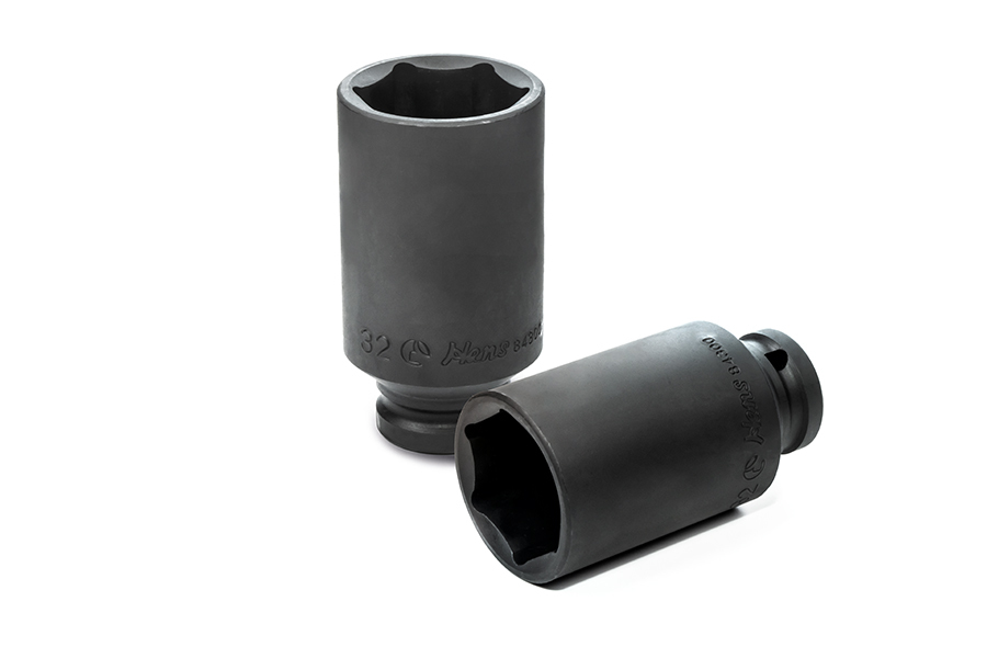Ударная торцевая головка длинная Hans 32 мм. К ударным головкам предъявляются требования, которые резко отличаются от требований к обычным торцевым головкам. Ведь пневматический инструмент создает нагрузки совсем другого рода, а именно эти нагрузки носят ударный характер. Как следствие главным требованием к ударным головкам является, высокая ударостойкость. Именно этим обусловлено использование специального хром-молибденового сплава при их производстве. Также в качестве антикоррозионной обработки используется термохимическое покрытие — воронение или фосфатирование. Делается это по причине того что, хромникелевое покрытие при ударах может отслаивается. Ударные головки компании Hans изготовлены из высококачественных материалов и соответствуют всем требованиям стандартов ГОСТ и DIN