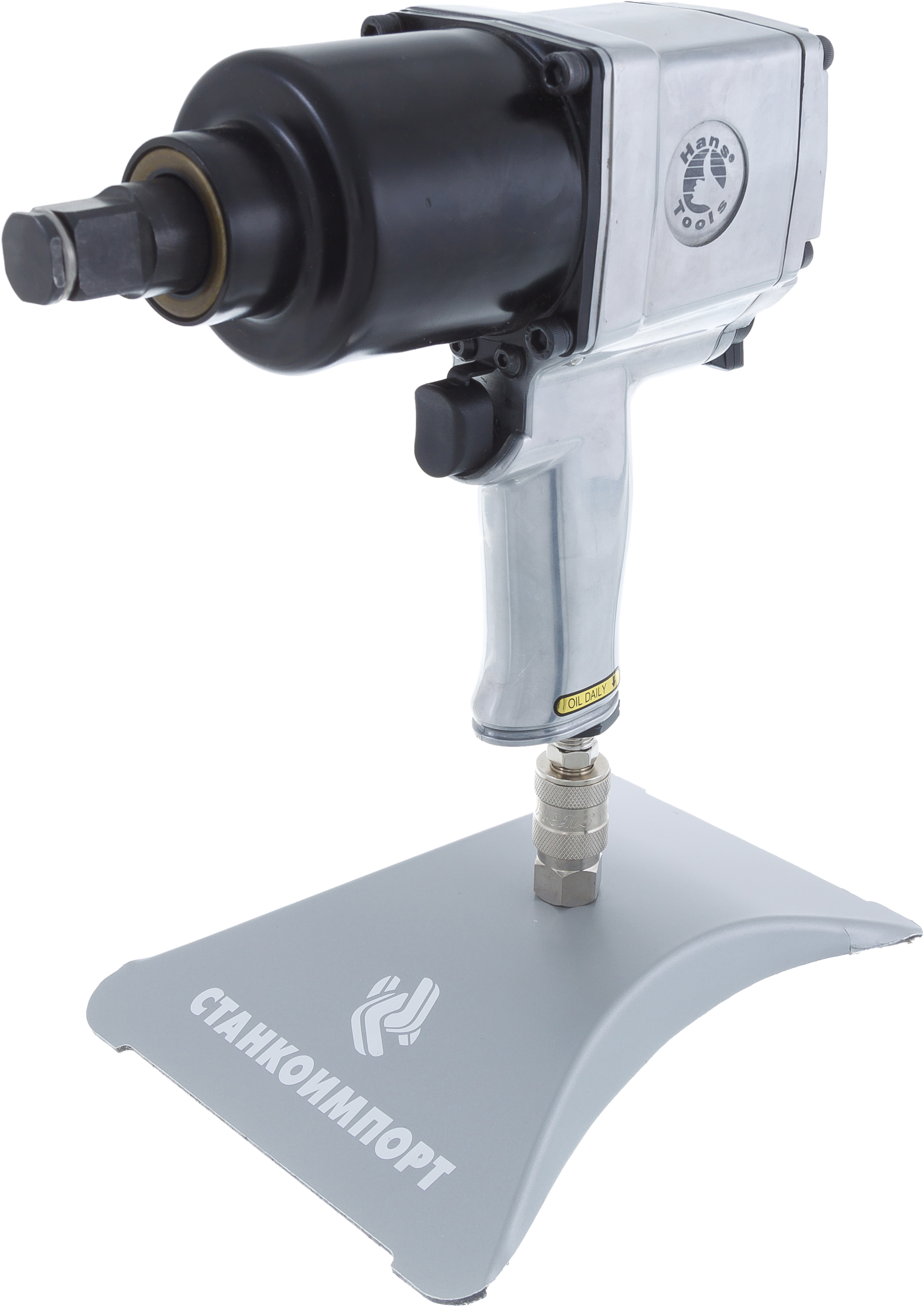 Пневматический гайковерт/Пневмогайковерт Hans 86113 – это инструмент, предназначенный в первую очередь для работы в тяжелых условиях и под интенсивной нагрузкой. Он совмещает в себе выверенную удачную конструкцию и крайне прочный металлический корпус с большим ресурсом работы и отличной мощностью. Данная модель имеет – классический ударный механизм типа Twin Hammer. Hans 86113 – безусловно выносливая, прочная модель от Hans, проверенная временем. Этот пневматический гайковерт можно рекомендовать к использованию не только на СТО и шиномонтажах (для грузовых лучше подойдет гайковерт пневматический ударный 1"), но и на производстве. Однако надежность и прочность имеют обратную сторону в виде лишнего веса, который у 86113 составляет 4,75 кг, хотя максимальное рабочее усилие 1356Нм (не стоит путать с пиковым, которое указывают различные производители, у данного гайковерта достигает 1898Нм) позволяет смириться с проверенным и надежным гайковертом весящим менее 5 кг. С пневмогайковертом необходимо использовать только торцевые головки и аксессуары ударного типа. Они меньше изнашивают крепеж и посадочный квадрат гайковерта, а также более устойчивы к импульсным (ударным) нагрузкам, получаемым от привода гайковерта. Как правило, ударные головки и сопутствующие приспособления типа карданов и удлинителей изготавливают из хромомолибденового сплава и покрывают черным фосфатным покрытием. Особенности подготовки воздуха Для всех пневмогайковертов Hans величина потребления воздуха, необходимая для работы инструмента на полную мощность, обычно указана «с запасом». У 86111 потребление воздуха находится на уровне 198-210 л/мин. Исходя из этого, минимальные рекомендуемые модели компрессоров такие: •220 В — FIAC СБ4/С-100.АВ360 А; •380 В - FIAC СБ4/С-200 АВ515. В связи с тем, что обычный воздух имеющий определенную влажность, к тому же загрязненный «смесью» из компрессорного масла и влаги, конденсируемой в рессивере компрессора, способен навредить двигателю любого пневмоинструмента, то перед попаданием в инструмент ему требуется осушение и очистка. Для этой цели применяют оборудование для подготовки воздуха: специальные фильтры-осушители для компрессора, также называемые масловлагоотделителями, а также лубрикаторы для пневмоинструмента, обогащающие воздушный поток маслом. Оба этих приспособления часто выпускаются в виде единого изделия – модульной группы для пневмолинии. Рекомендованные модели для пневмогайковерта 86113: Модульная группа 8600-4010. Пневмошланги должны обладать подходящей пропускной способностью (для 86113 подходят шланги сечением 13 мм или 1/2 дюйма) и соответствовать общим параметрам: быть маслостойкими и способным выдержать максимальное рабочее давление не менее 10 атмосфер. Для монтажа пневмолинии при несовпадении сечений штуцеров оборудования и шланга вам могут понадобиться переходники, а для разветвления линии вам будут необходимы специальные фитинги. Кроме того, в целях удобства и скорости работы рекомендуется применять быстросъемные …