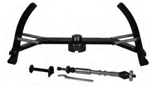 Адаптер состоит из специального фланца, центрирующего вала 14x315мм, центрирующей втулки 17 мм, конусов 21–35 мм + 15–25 мм, проставки 25x40 мм+ 25x15 мм, втулок 17 мм + 20 мм, гайки с насечкой M14x1.5 мм, специального ключа. Для колес мотоциклов с диаметром ступицы 14 - 35 мм