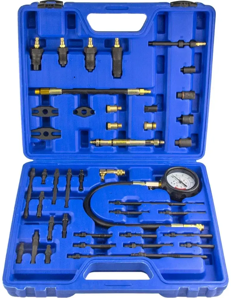 - Наличие адаптеров с различной резьбой позволяет использовать набор для многочисленного парка дизельных и бензиновых автомобилей.