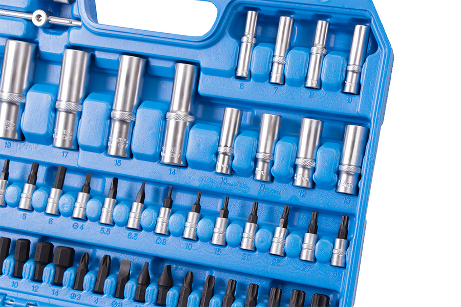 Назначение: Универсальный набор инструментов 108 предметов от бренда STANKO в первую очередь предназначен для монтажных, демонтажных и ремонтных работ. Может применяться как в автосервисах, мастерских и СТО, так и в гараже или дома для бытового использования. Описание: Инструменты из данного набора отличаются износостойкостью: биты изготовлены из высококачественной инструментальной стали S2, а остальные предметы из прочной хромованадиевой стали. Рациональное размещение инструментов в кейсе обеспечивает удобство транспортировки и облегчает поиск необходимого инструмента. Сами инструменты расположены в индивидуальных подписанных ячейках, снабженных фиксаторами. Отвертки, торцевые головки и биты основных типоразмеров выручат в разных ситуациях. Трещоточные ключи имеют механизм 72 зуба с шагом 5° и помогут раскрутить гайки в труднодоступных местах. Карданы и удлинители нужны для еще более эффективного решения задач. Особенности: Анатомическая, двухкомпонентная рукоятка трещотки изготовлена из маслобензостойкого материала, что обеспечивает комфорт в работе. Внутри механизма трещотки установлена специальная плоская пружина, которая исключает люфты. Трещотка имеет металлический флажковый переключатель. Свечные головки снабжены магнитным фиксатором, посаженным через латунное кольцо. Головки снабжены специальными фрикционными насечками, предотвращающими выскальзывание из рук. Весь инструмент имеет хром-никелевое покрытие. В подарок к каждому набору кладем рабочие перчатки универсального размера. Комплектация: НаименованиеОписание торцевые головки 1/4"4, 4.5, 5, 5.5, 6-14 мм торцевые головки длинные 1/4"6-13 мм торцевые головки E-star 1/4"E4, Е5, Е6, Е7, Е8 ключ трещоточный с быстрым сбросом 1/4" 72 зуба отверточная рукоятка 1/4"150 мм вороток Т-образный 1/4"110 мм удлинители 1/4"50, 100 мм кардан шарнирный 1/4"40 мм торцевые головки со вставкой 1/4": - шестигранные НЕХ3, 4, 5, 6 мм - шлицевые SlotSL4, SL5.5, SL6.5 - крестовые PozidrivPZ1, PZ2 - крестовые PhilipsPH1, PH2 - TorxT8, T10, T15, T20, T25, T27, T30 угловой шестигранный ключ1.5, 2, 2.5 мм НаименованиеОписание торцевые головки 1/2"10-22, 24, 27, 30, 32 мм торцевые головки длинные 1/2"14, 15, 17, 19, 22 мм торцевые головки E-Star 1/2"E10, E11, E12, E14, E16, E18, E20, E22 ключ трещоточный с быстрым сбросом 1/2" 72 зуба удлинитель-вороток...