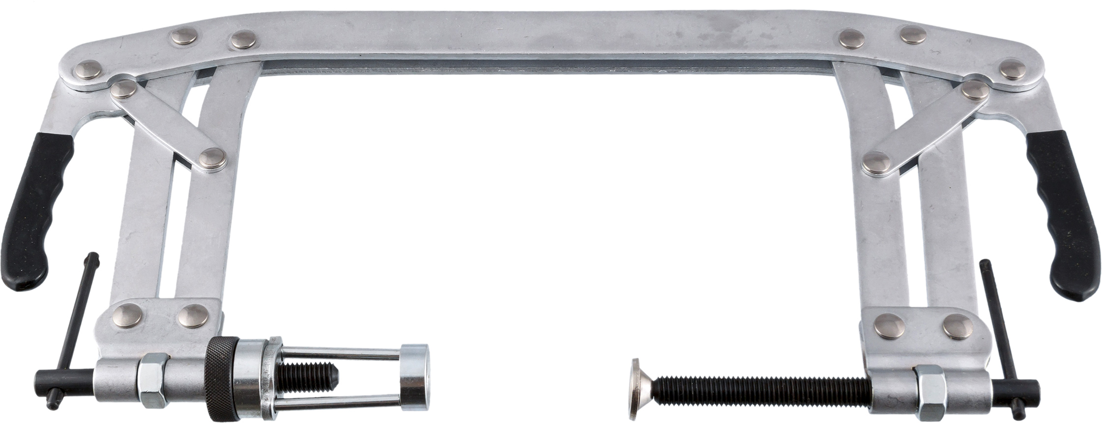 KA-6428 Рассухариватель клапанов универсальный. Предназначен для сжатия пружин впускных и выпускных клапанов. Особенности: Выполнен в форме струбцины. Используется при снятой головке блока цилиндров. Регулировка рабочего хода с помощью резьбового вала в зависимости от длины клапана. Фиксация струбцины в необходимом положении позволяет освободить руки для удобства демонтажа стопорных сухарей клапана. Подходит для обслуживания двигатель типа OHC, OHV и CVH Рабочий диапазон: 75 – 200 мм.