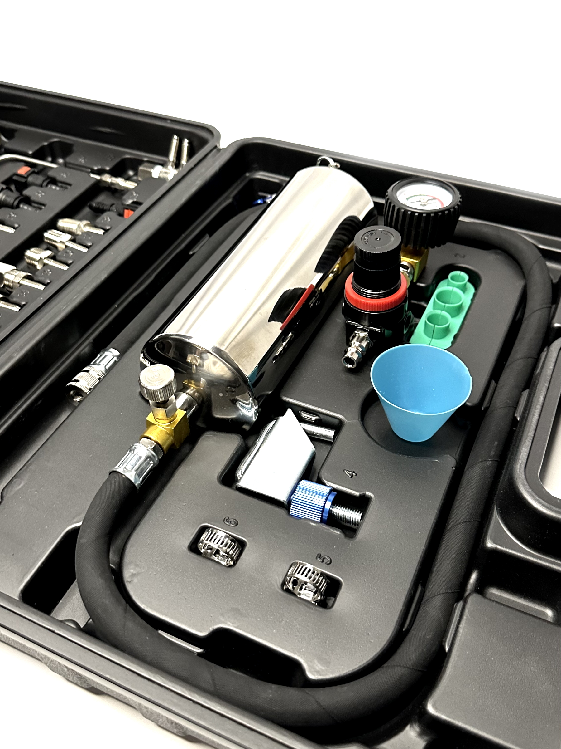 Установка для очистки топливных систем применяется для очистки топливных систем, дроссельной заслонки и впускного тракта бензиновых или дизельных двигателей. Применение данной установки позволяет произвести очистку топливных форсунок без их демонтажа. Очистка осуществляется за счет примения специальных жидкостей.