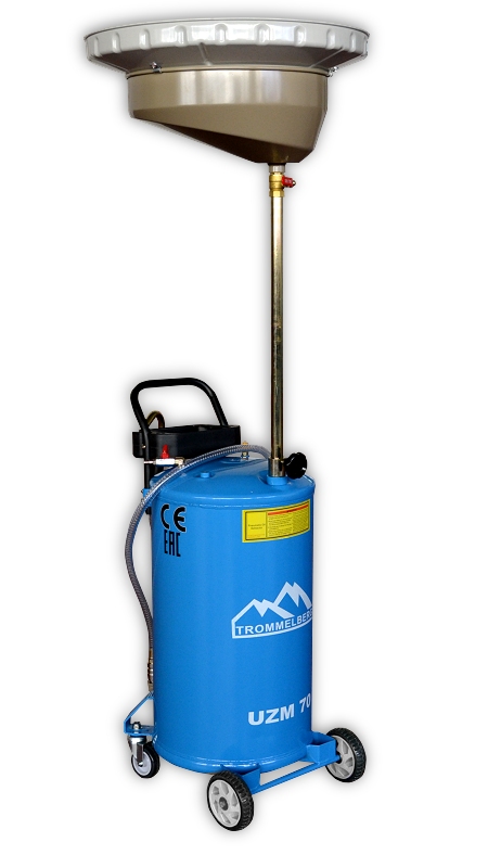 Мобильная установка для сбора отработанного масла путем слива в подъемную ванну.