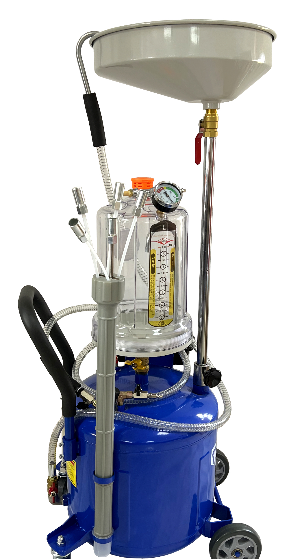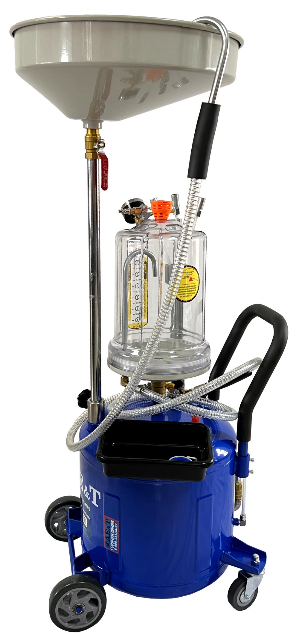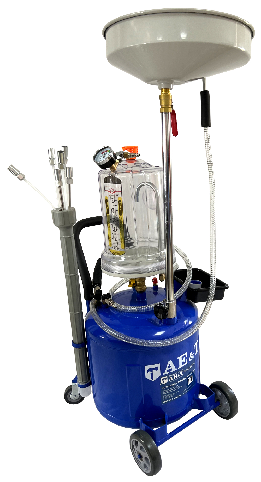 Установка замены масла TF-6238TPG – продуманный и компактный аппарат, позволяющий быстро слить жидкость или масло из двигателя. С помощью манометра и прозрачной предкамеры можно точно отслеживать процесс.