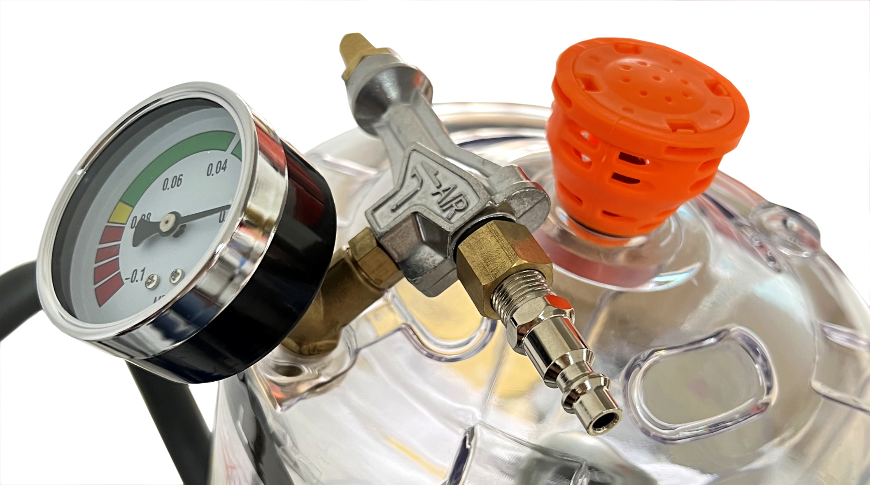 - Все необходимые аксессуары в наборе: прозрачная предкамера объемом десять литров, шланги, воронка, шесть щупов, поворотные колеса.