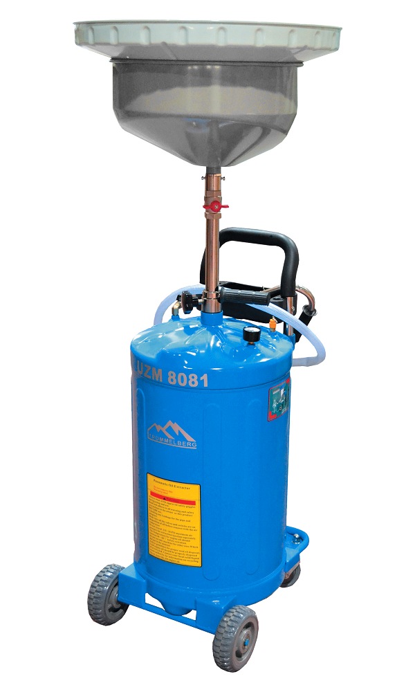 Мобильная пневматическая установка для сбора отработанного масла путем слива в подъемную ванну.