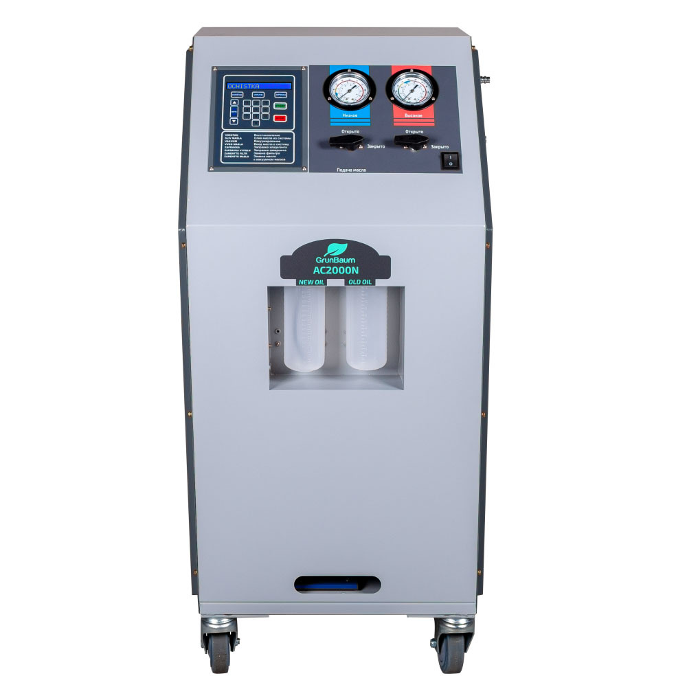 GRUNBAUM AC2000N - полуавтоматическая установка для развивающихся СТО, делающих шаг на пути к автоматизации в сфере оказания услуг по обслуживанию автокондиционеров. Максимально доступная установка при достаточном функционале.