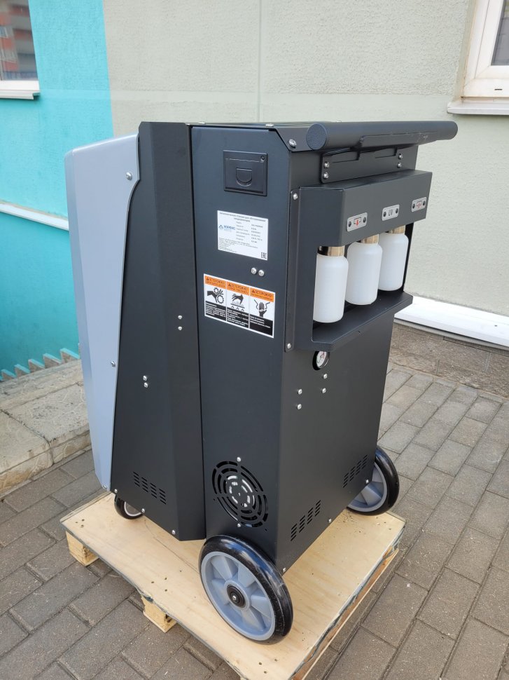 Установка позволяет работать с системами кондиционирования легкового, пассажирского, и легкого коммерческого транспорта. Функционал и конструктивные особенности: Тип установки - автоматическая (c возможность ручного управления всеми этапами) Подходит для обслуживания гибридных автомобилей и электроавтомобилей Встроенный термопринтер для вывода данных в конце цикла Электронная база данных автомобилей Меню на русском языке Управление - сенсорный дисплей 10" Откачка и очистка хладагента Отделение отработанного масла Вакуумирование системы (двухступенчатый насос) Автоматическая проверка на наличие внутренних утечек станции Проверка системы автомобиля на герметичность (датчик утечки) Автоматическая подача масла и красителя Добавление необходимого количества хладагента Технические характеристики: Хладагент - R134a Объём баллона - 22,5 л (опционально возможен подогрев баллона) Емкость для отработанного масла - 250 мл Емкость для масла (PAG/POE) - 250 мл Емкость для красителя (UV) - 250 мл Скорость вакуумирования - 120 л/мин Длина сервисных шлангов - 3,0 м Манометры низкого и высокого давления - электронные Манометр давления в баллоне для хладагента - электронный Температурный диапазон - 10-50С0 Ресурс фильтра осушителя - 80 кг Питание - 220В; 50Гц