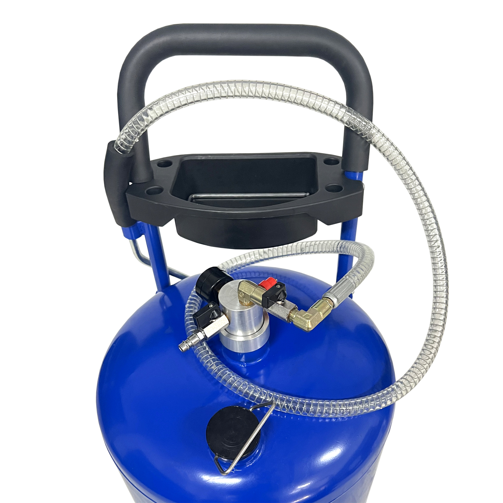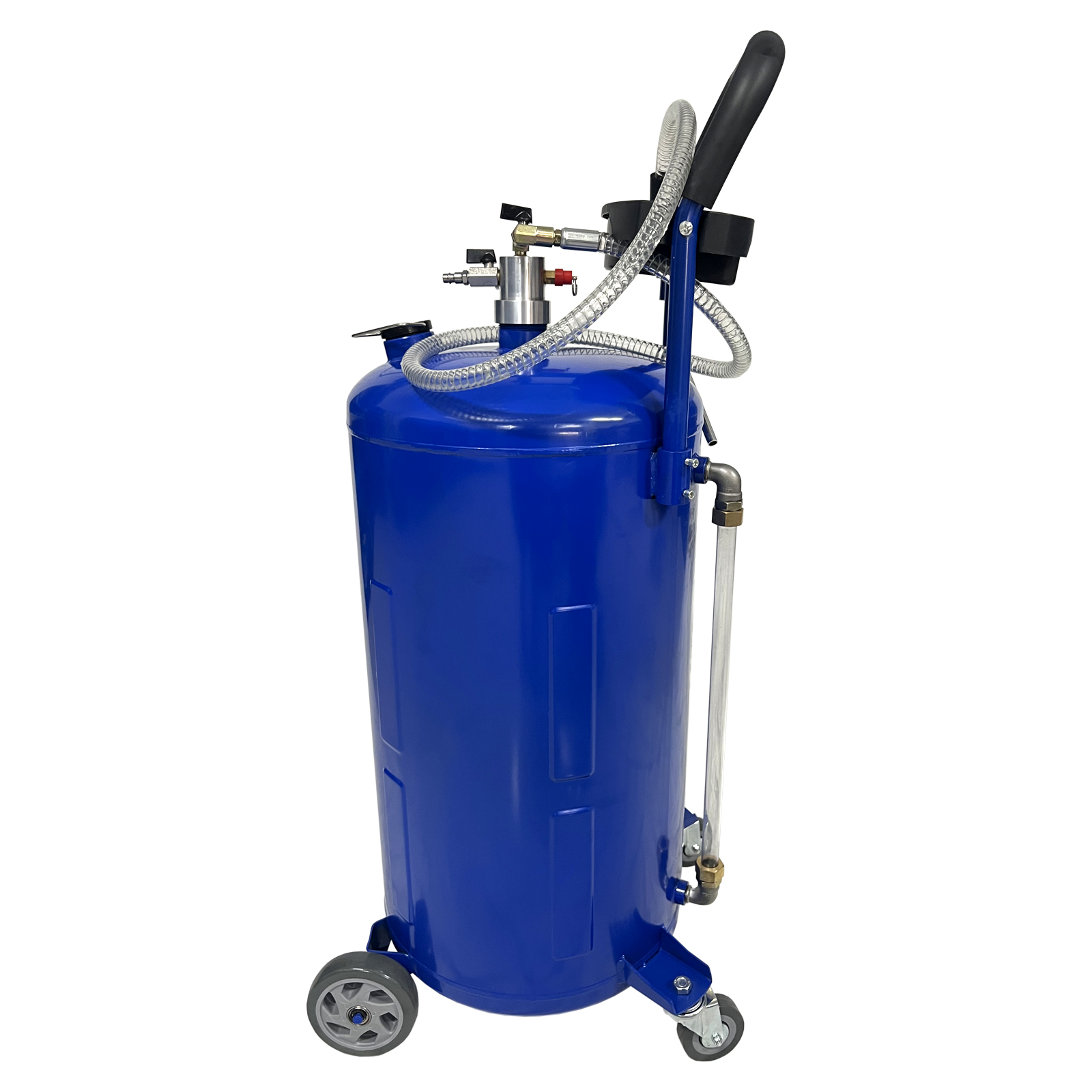 Нагнетатель масла TD-65390A с пневматическим приводом предназначен для заправки жидкого смазочного материала в обслуживаемые узлы транспортного средства. Перед началом работы маслораздаточная установка заправляется любым типом машинного масла, а затем легко подключается к компрессору через соединение 1/4” Euro.