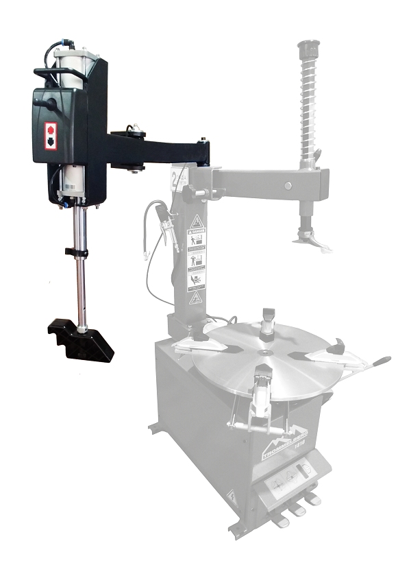 Компактное многофункциональное устройство "Третья рука" для монтажа / демонтажа низкопрофильных, широких и жестких шин. Предназначено для установки на полуавтоматические шиномонтажные станки Trommelberg.