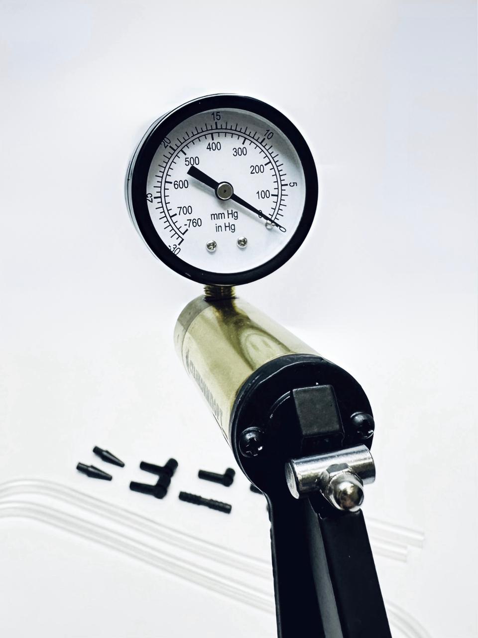 Описание: Тестер предназначен для выявления проблем с герметичностью различных систем. Также может использоваться для измерения степени разрежения во впускном коллекторе двигателя, диагностики системы управления геометрии турбины, откачки жидкостей и опрессовки системы кондиционирования. Технические характеристики Создаваемое разряжение: от -1 до 0 Бар Комплект набора: Пистолет с манометром-вакуумметром - 1 шт. Шланг 600 мм - 1 шт. Соединительные трубки 80 мм - 2 шт. Коннекторы для шлангов - 8 шт. Ёмкости для жидкости - 1 шт. Инструкция - 1 шт. Кейс пластиковый - 1 шт. Использование набора допускается только квалифицированным персоналом с соблюдением техники безопасности!