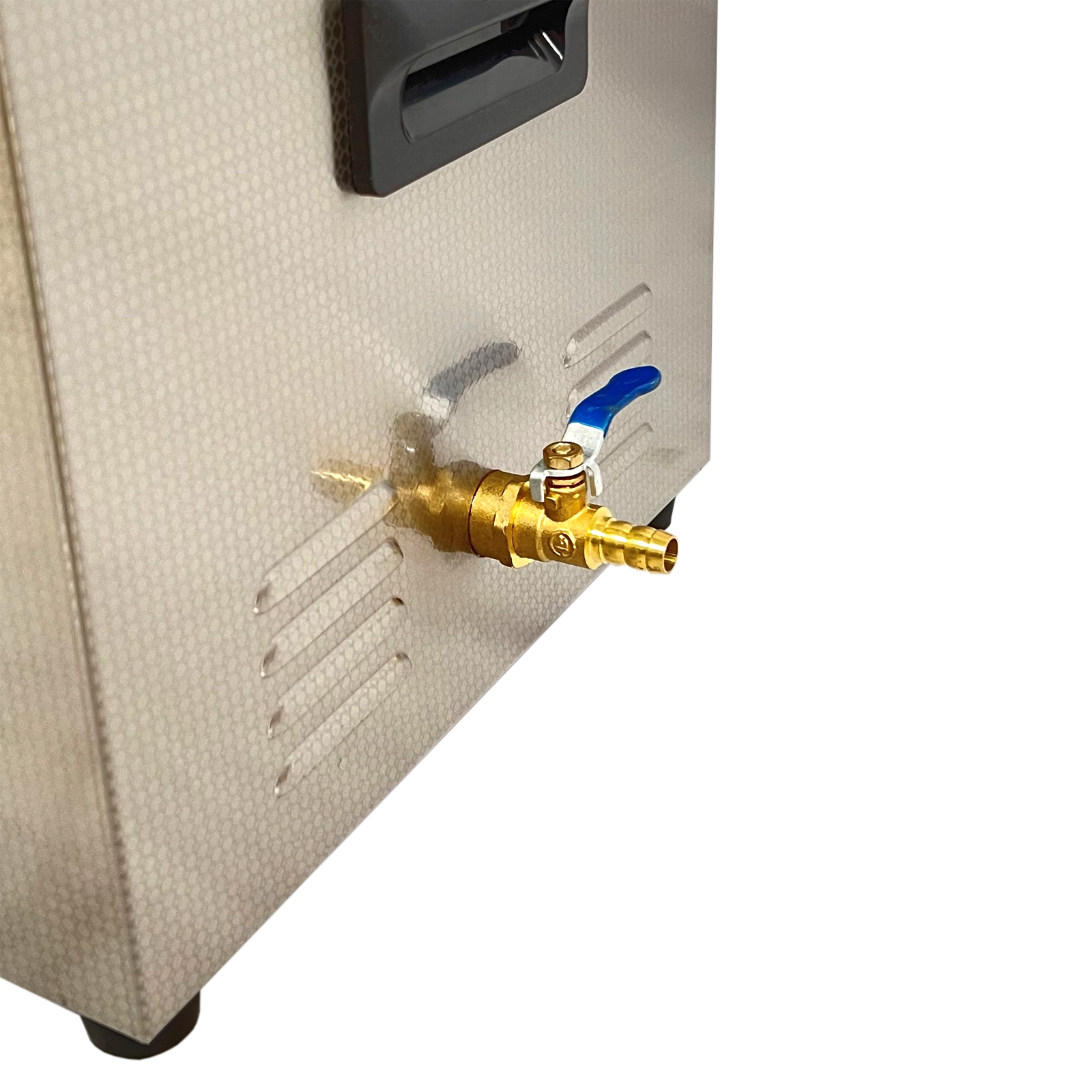 Для удаления отработанной жидкости из бака ультразвуковой ванны TC-150TH поверните ручку дренажного клапана и слейте воду.