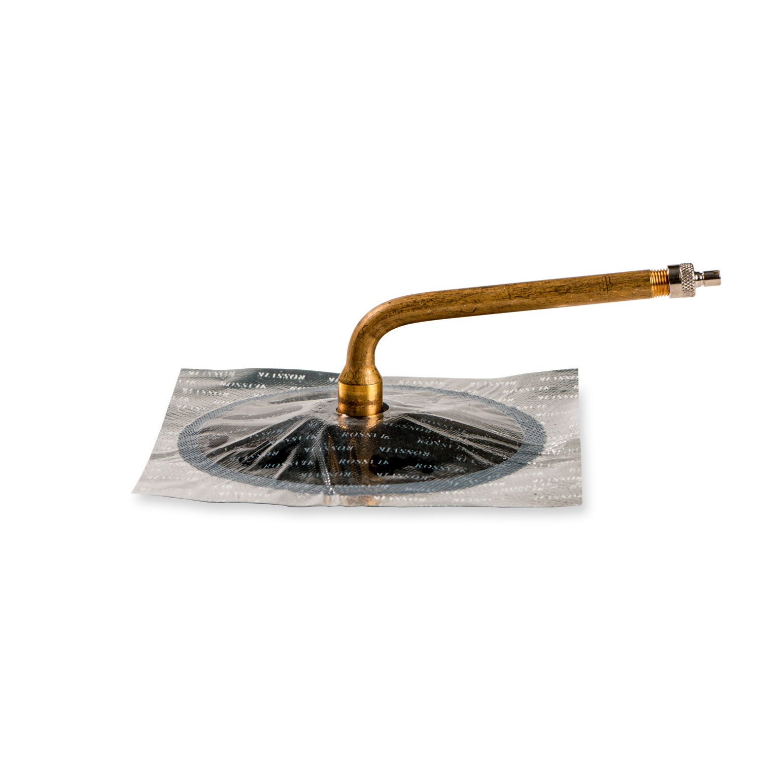 Для повышения надежности ремонта, перед установкой вентиль следует разогреть до 60°С или кратковревенно прижать на разогретов до 60°С вулканизаторе с лекалом под вентиль.