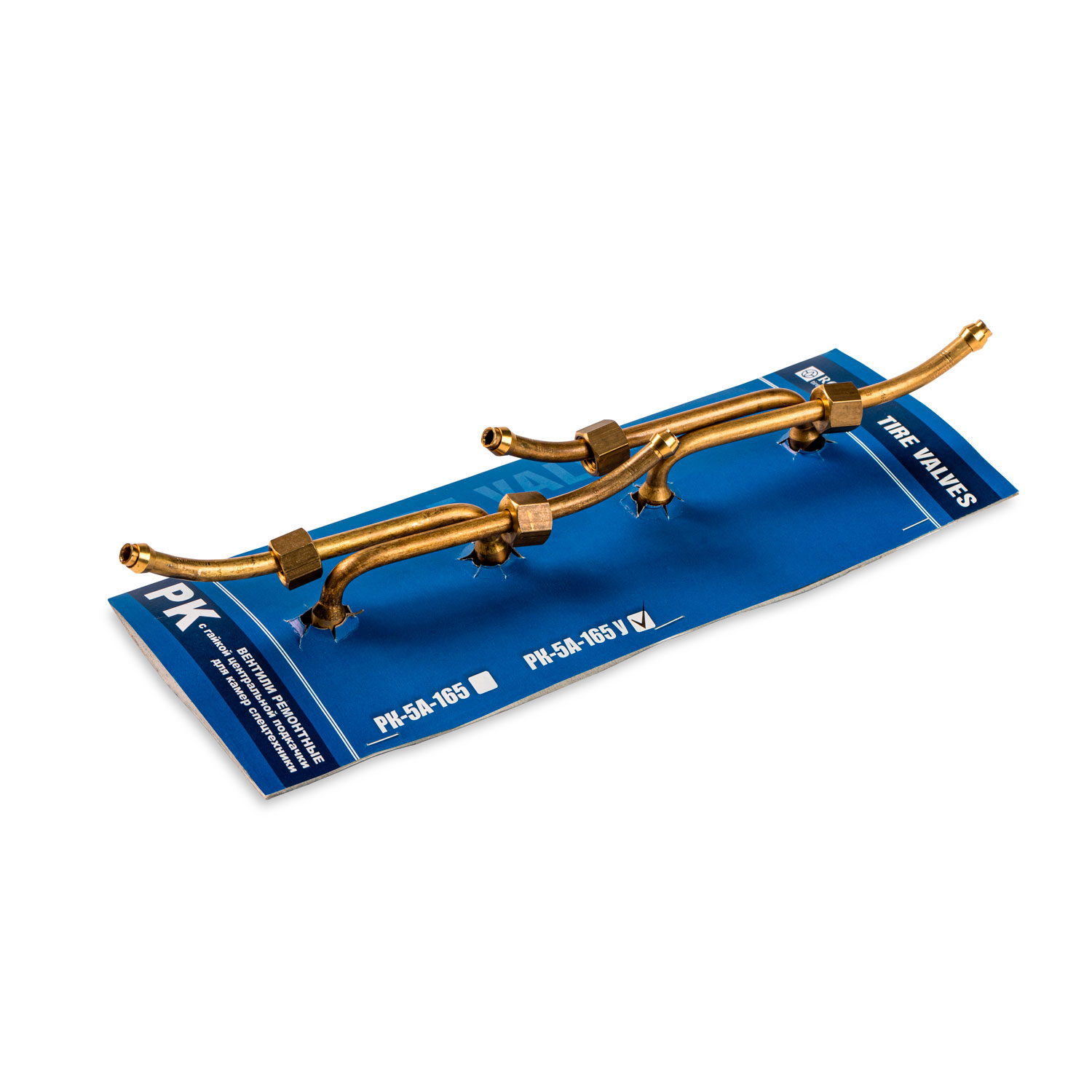Удлиненный вентиль с гайкой Вентиль РК-5А-165 У применяется для ремонта пневматических камер для шин 425/85R21/1220*400R533/1300*530-533 устанавливаемых на автомобили КАМАЗ/УРАЛ/КрАЗ с централизованной системой подкачки колес. Размер 100х165 угол 94° / 27° ( двойной изгиб)