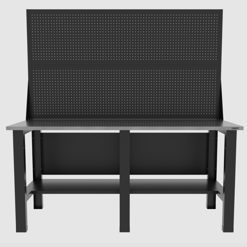 Серия "Low Cost", Цвет: Черный, Размеры ВхШхГ: 870х1800х700 мм, Столешница: МДФ 24мм + сталь 1,2 мм, Материал корпуса: сталь 1,2 мм, Вес: 75 кг, Экран (1 шт) : 1800x500x25 мм, вес 10 кг Допустимая нагрузка на верстак: 550кг