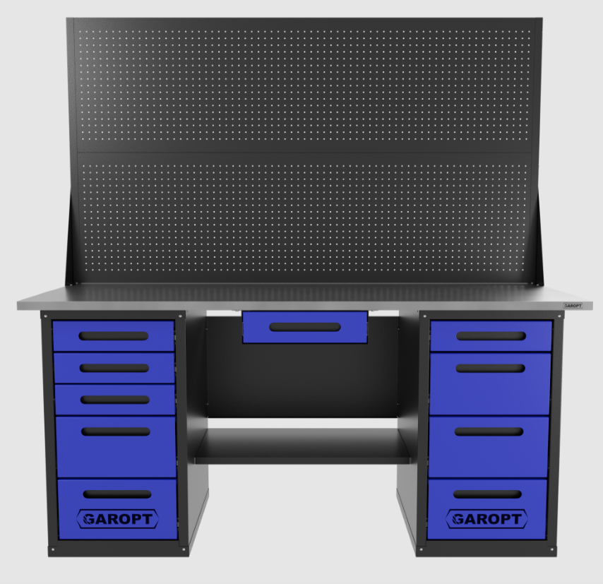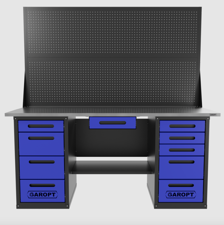 Верстак двухтумбовый 4 ящиков /5 ящиков с двумя экранами и ящиком, 1800*700 синий GAROPT, GT1800Y1Y4Y5PP2.blue