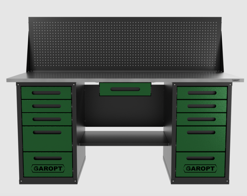 Верстак двухтумбовый 5 ящиков /5 ящиков с экраном и ящиком, зеленый 1800*700 GAROPT, GT1800Y1Y5Y5PP.green