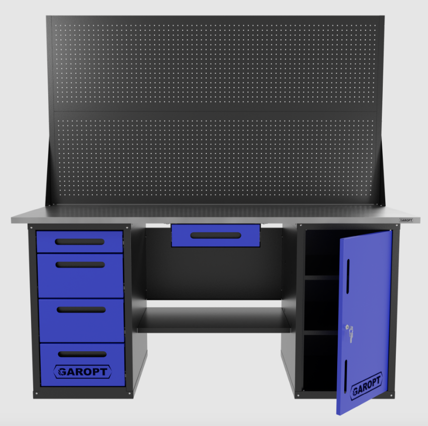 Верстак двухтумбовый дверь/4 ящиков с двумя экранами и ящиком, синий 1800*700 Garopt, GT1800DY1Y4PP2.blue