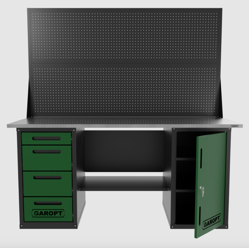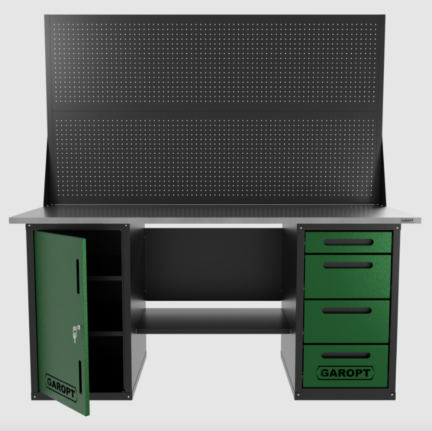 Верстак двухтумбовый дверь/4 ящиков с двумя экранами, зеленый 1800*700 Garopt, GT1800DY4PP2.green