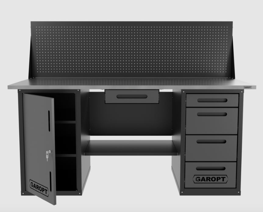 Верстак двухтумбовый дверь/4 ящиков с экраном и ящиком, серый 1800*700 Garopt, GT1800DY1Y4PP.grey