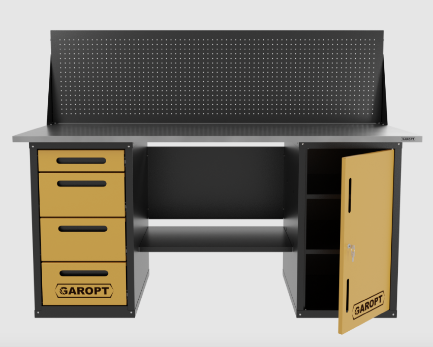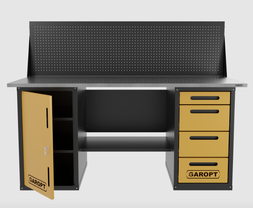 Верстак двухтумбовый дверь/4 ящиков с экраном, желтый 1800*700 Garopt, GT1800DY4PP.yell