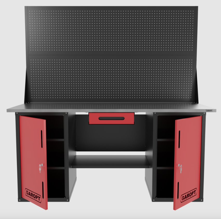 Верстак двухтумбовый с двумя экранами и ящиком, красный 1800*700 Garopt, GT1800DDY1PP2.red