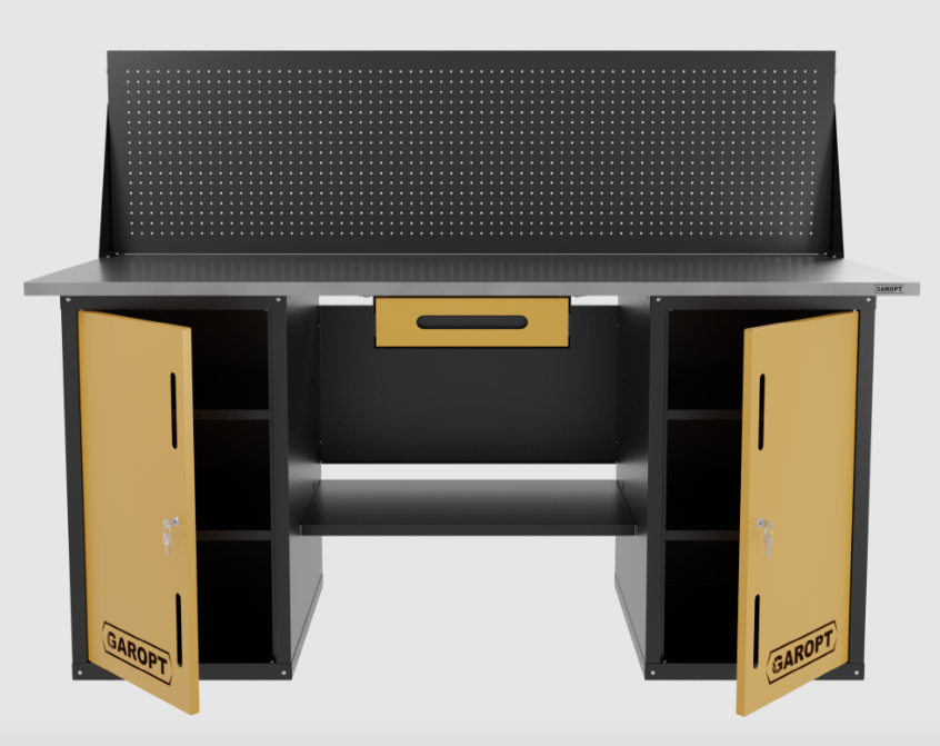 Верстак двухтумбовый с экраном и ящиком, желтый 1800*700 Garopt, GT1800DDY1PP.yell