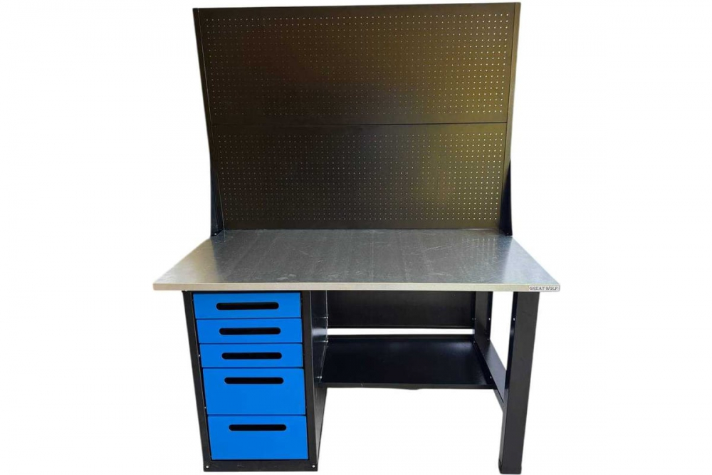 Great Wolf GWT-V1400BL5 — профессиональный стол-верстак для организации идеального рабочего места в мастерской, гараже или на производстве.