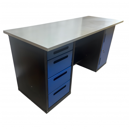 Усиленная столешница (1800х700х27мм) из МДФ и оцинкованного металла позволяет закрепить тиски и производить любые силовые работы по ремонту.