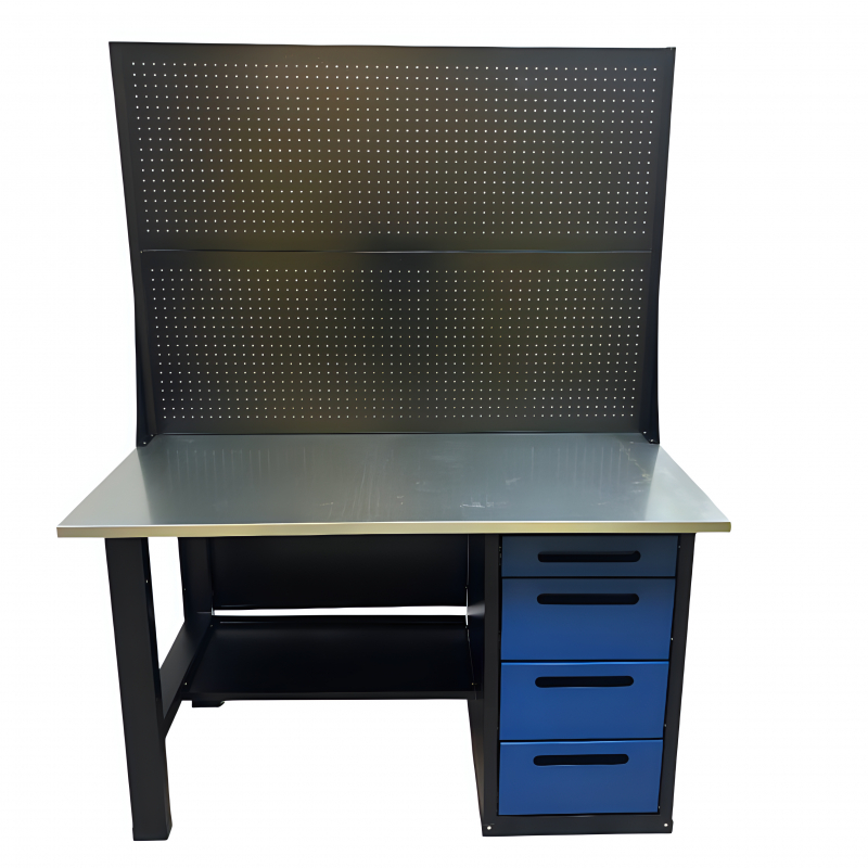 Тумба с 4 ящиками (3 высоких ящика 185х373х445 и один узкий 80х373х445), а также полка и 2 перфорированных панели позволяют разместить большое количество инструмента и оборудования.