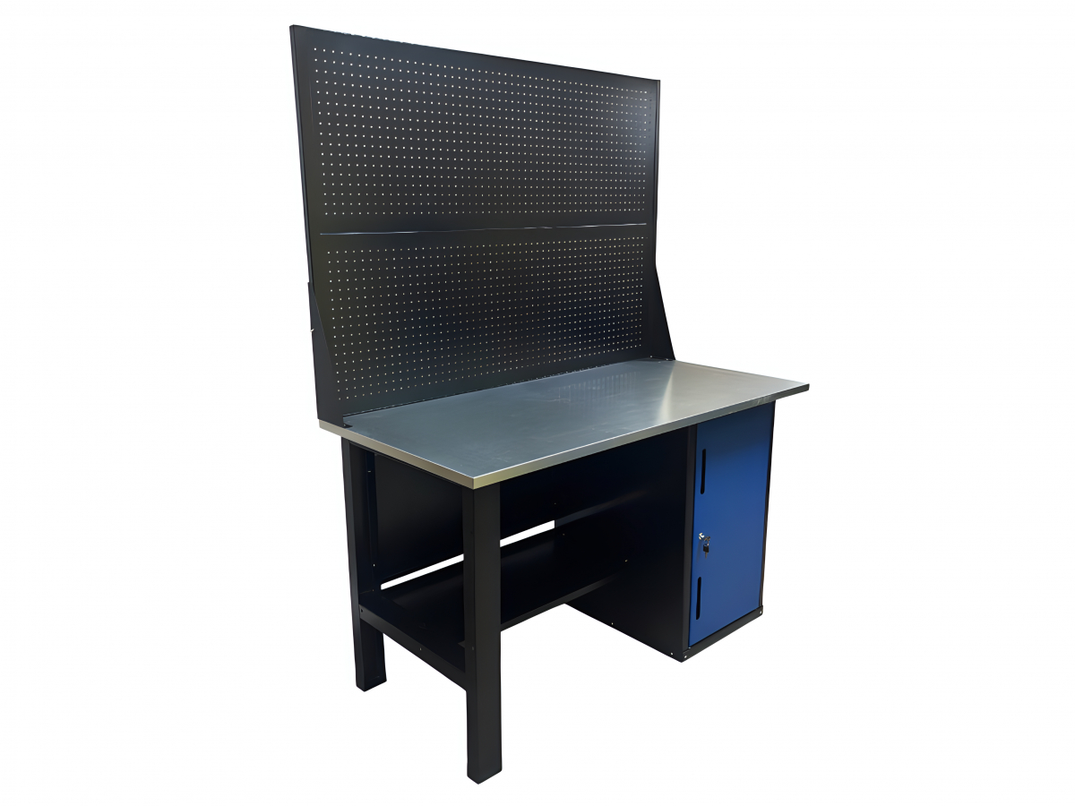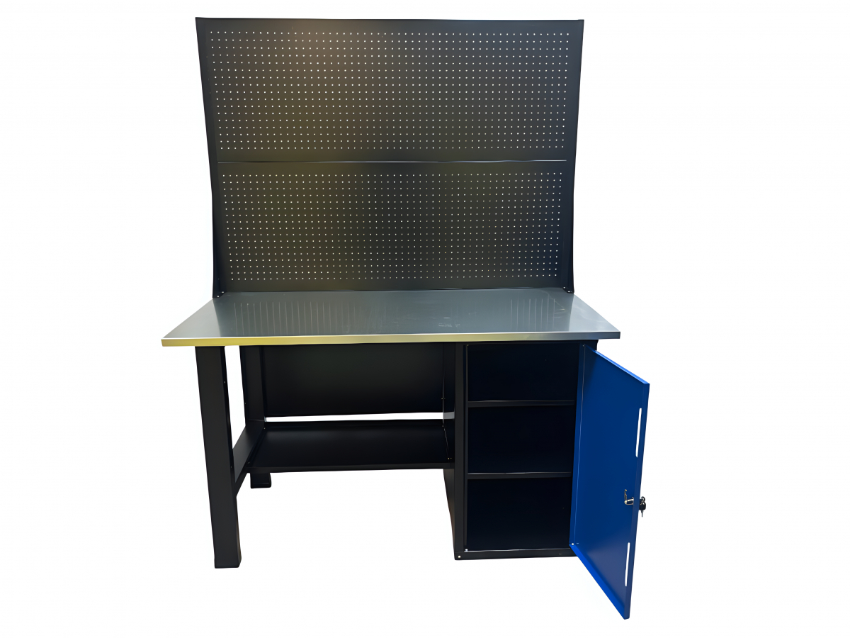 Усиленная столешница (1400х700х27мм) из МДФ и оцинкованного металла позволяет закрепить тиски и производить любые силовые работы по ремонту.