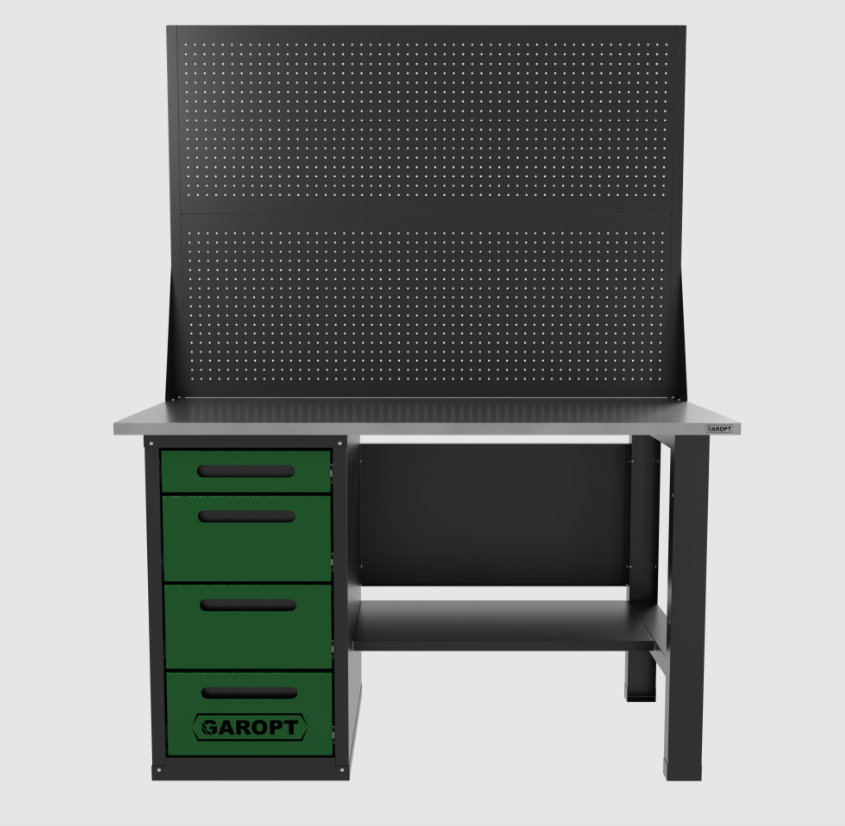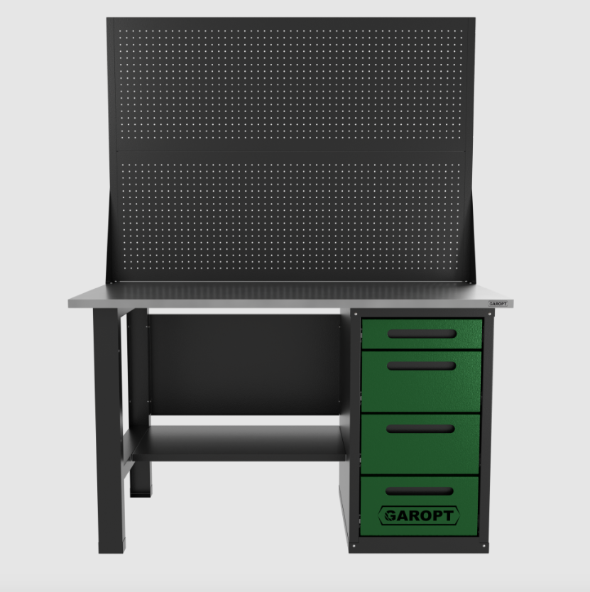 Верстак однотумбовый 4 ящика с двумя экранами зеленый 1400*700 Garopt, GT1400STY4PP2.green