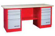 Наименование: 01.245 Верстак металлический слесарный двухтумбовый. 2 тумбы: 4 ящика/5 ящика Изготавливается из высококачественной стали толщиной 0,9-1,5 мм., окрашен стойкой порошковой краской,любая тумба может быть установлена как справа так и слева, габаритные размеры (ширина и глубина по столешнице, высота до верха столешницы) 1900х686х848мм. Масса брутто 120,6 кг Комплектация: Верстаки окрашены глянцевым порошковым покрытием, обеспечивающим прекрасный внешний вид и простоту при чистке.Для удобства транспортировки верстак поставляется в разобранном виде в четырех упаковках: тумба верстачная – 2 шт. 770х620х530 мм. полка/стенка – 1 шт. 710х530 х70 мм. столешница – 1 шт. 1950х700х50 мм. Максимальные нагрузки оцинкованная столешница — 300 кг. полка верстачная — 40 кг. полка тумбы — 30 кг. ящик подвесной — 20 кг. ящик тумбы — 20 кг.