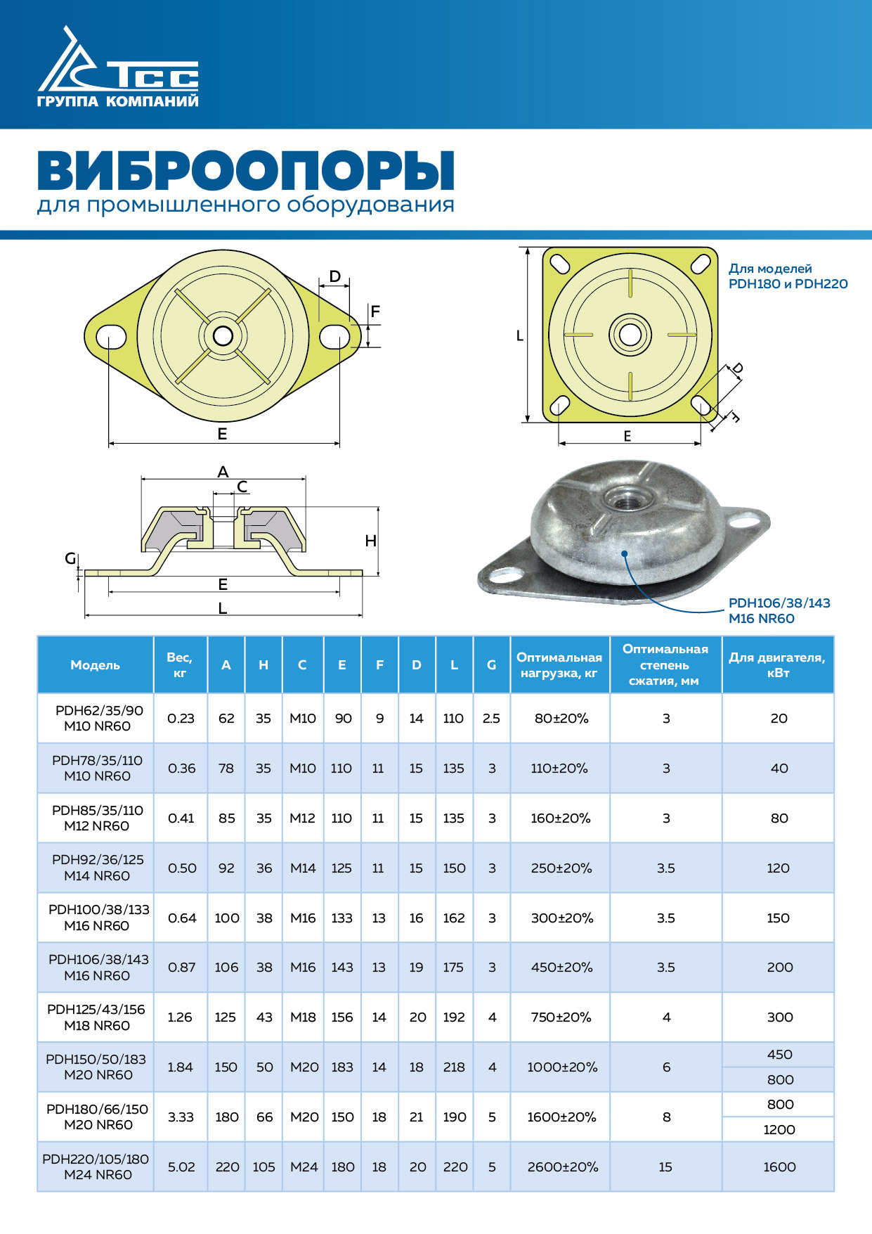 Вибропоры предназначены для эффективного гашения вибраций оборудования. Они жестко крепятся на устанавливаемую поверхность. Диапазон нагрузок опор от 80 кг - 1000 кг..
