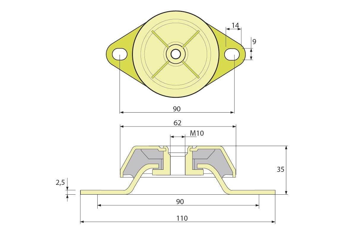 Вибропоры предназначены для эффективного гашения вибраций оборудования. Они жестко крепятся на устанавливаемую поверхность. Диапазон нагрузок опор от 80 кг - 1000 кг..