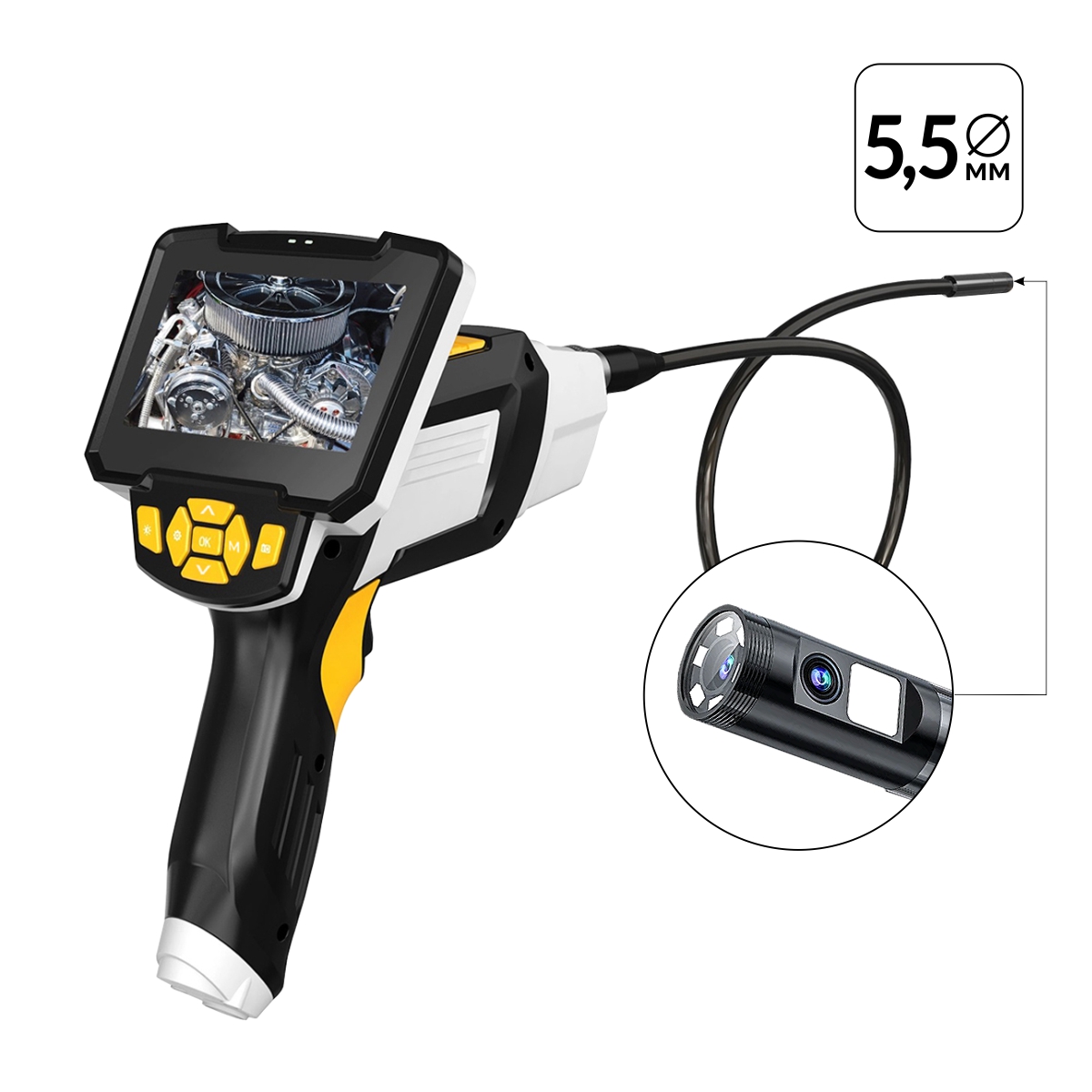 iCartool IC-V112A промышленный видеоэндоскоп с двумя камерами и IPS экраном - идеальный инструмент для использования в автомобильной индустрии: применим для визуального контроля скрытых полостей узлов автомобиля при техническом обслуживании или оценке его работоспособности. Главная отличительная особенность iCartool IC-V112A - вторая камера, которая ориентирована на 90 градусов относительно основной. Это позволяет решить основную проблему специалистов СТО по контролю состояния впускных и выпускных клапанов ДВС. Наличие второй камеры дает возможность отказаться от использования видеоэндоскопов c дорогостоящими управляемыми зондами. Основная и боковая камеры в общей сложности дают обзор в 140 градусов. Зонд диаметром 5.5 мм и длиной 1 метр имеет влаго и пылезащиту IP67. Предусмотрена возможность подбора и замены зонда для различных задач. Доступные диаметры: 8.0 мм – с 2 камерами 5.5 мм – с 2 камерами 3.9 мм – с 1 камерой В комплект входит USB-кабель для зарядки, а также дополнительные насадки (крюк, магнит). Насадки крепятся к зонду при помощи резьбового соединения, что позволяет избежать падения насадок с зонда и расширяет возможности видеоэндоскопа (крюк для работы с электропроводкой, магнит для извлечения металлических предметов из труднодоступных мест). Для работы в плохо освещенных местах предусмотрена регулируемая LED подсветка с 3 режимами яркости. Встроенный аккумулятор поддерживает работу до 3 часов без подзарядки. Особенности: Две камеры - одна фронтальная, вторая расположена под углом 90° Режим записи видео в формате AVI (1280x720) Сменный полужесткий зонд диаметром 5.5 мм и длиной 1м, резьбовое крепление насадок на зонд Фокусное расстояние основной / боковой камеры от 2 до 10 см Цветной IPS дисплей 4,3" LED подсветка из 6 белых светодиодов с 3-мя режимами яркости Поворот картинки на 180°, цифровой зум Встроенный Li-ion аккумулятор емкостью 2000 мАч Для сохранения полученных результатов используется TF карта памяти (не входит в комплект) Преимущества: Удобный интерфейс с поддержкой русского языка Эргономичная конструкция рукоятки Малый вес Управление фото и видео записью при помощи одной кнопки Время непрерывной работы до 3х часов Объектив имеет защиту IP67, что гарантирует надежность и долгий срок службы Концепция сменных зондов – доступны зонды с разными диаметрами Поддержка карт памяти объемом до 64 Гб Широкий спектр применения: автомобильная сфера (проверка камеры сгорания, поршня и клапанов, узлов без разборки) инспектирование вентиляций инспектирование механизмов без разборки инспектирование объектов ЖКХ Технические характеристики: Диаметр зонда: 5.5 мм Диагональ дисплея: 4,3" Тип дисплея: IPS, LCD Разрешение экрана: 480 x 272 Количество камер: 2 Тип камеры: CMOS Разрешение камер: 1 Мп Фокусное расстояние: Фронтальная камера 2 - 10 см, Боковая камера 2 - 5 см Угол обзора: 140° Длина зонда: 1 м Жесткость зонда: полужесткий Материал оплетки трубки зонда: полиуретан Степень защиты зонда: IP67 Подсветка камеры: 6+1 светодиод,3 режима яркости Разрешение изображения: 1280 х 720 Формат изображения: JPEG Разрешение видео: 1280 ? 720 Формат видео: AVI Поддержка карт памяти: до 64 ГБ Цифровой зум: да Аккумулятор: 2000 мАч Время работы: до 3 часов Рабочая температура: от -10 °C до + 50 °C Комплектация: Экран Зонд Корпус видеоэндоскопа Крючок Кольцо Магнит USB кабель для зарядки Инструкция пользователя Кейс