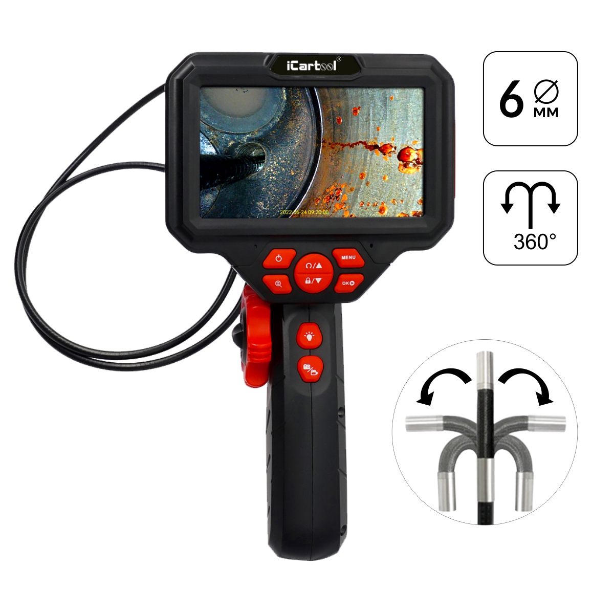 Видеоэндоскоп управляемый, экран 5", 2Мп, 1920x1080, 1м, 6мм, 360° iCartool IC-V200C
