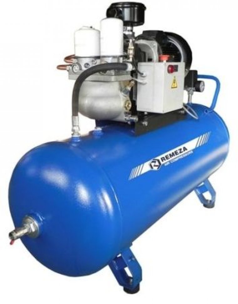 Винтовой компрессор ВК3А-7,5-200-1*, ресивер 200 литров , производительность 315л/мин,  рабочее давление 7,5 бар, мощность двигателя 2,2кВт, вес 130 кг, габариты 1550х570х1100мм. REMEZA, Республика Беларусь