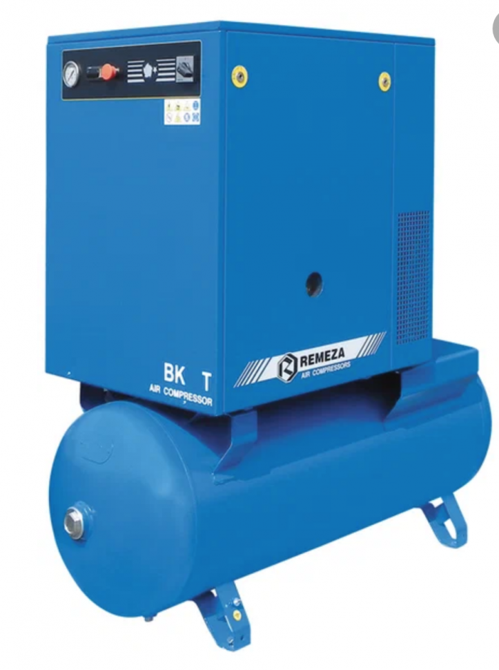 Винтовой компрессор ВК7Т-10-270, ресивер 270 литров , производительность 700л/мин, рабочее давление 10 бар, мощность двигателя 5,5кВт, вес 320 кг, габариты 1700х680х1500мм. REMEZA, Республика Беларусь