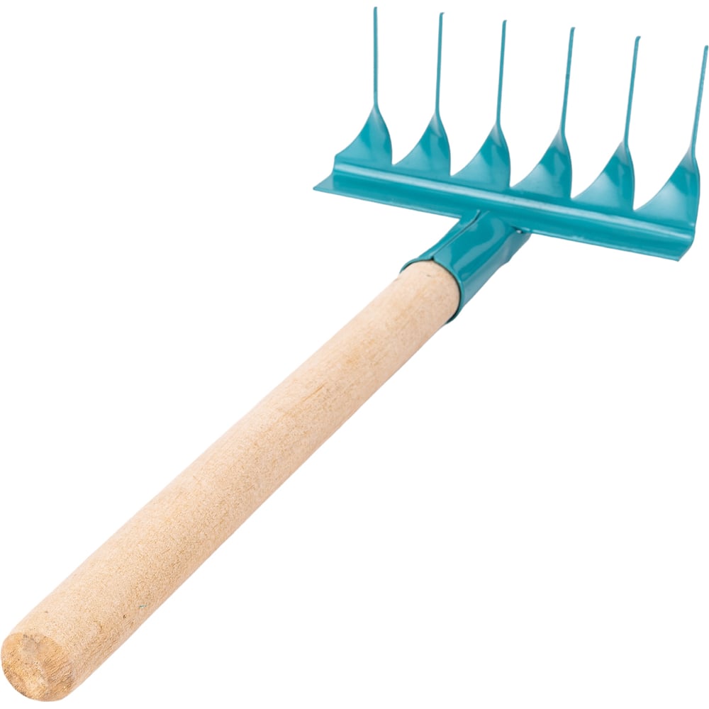 Витые грабли Gigant 6-зубые, порошковая окраска, с черенком GAV-14 предназначены для рыхления, аэрации, выравнивания почвы, уборки мелких корней садовых растений и цветов на небольших грядках и клумбах. Грабли изготовлены из прочной стали, черенок выполнен из древесины. Порошковое покрытие защищает инструмент от коррозии.