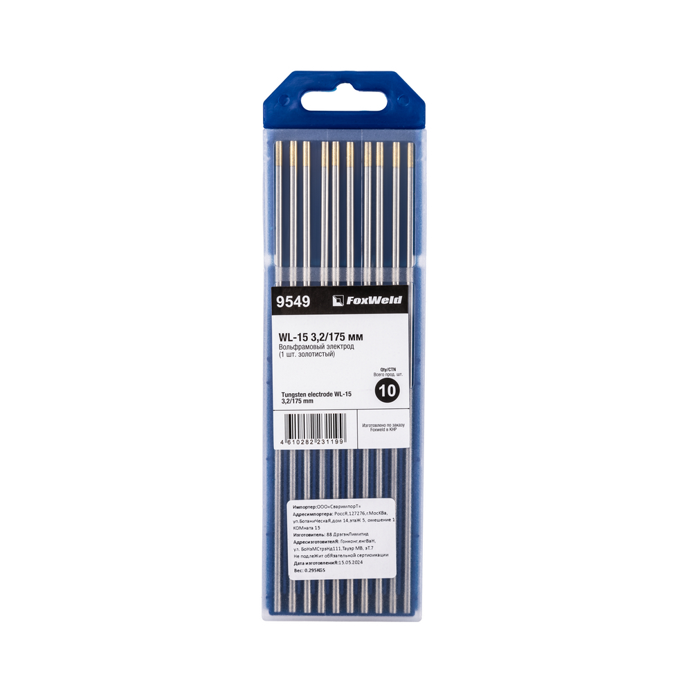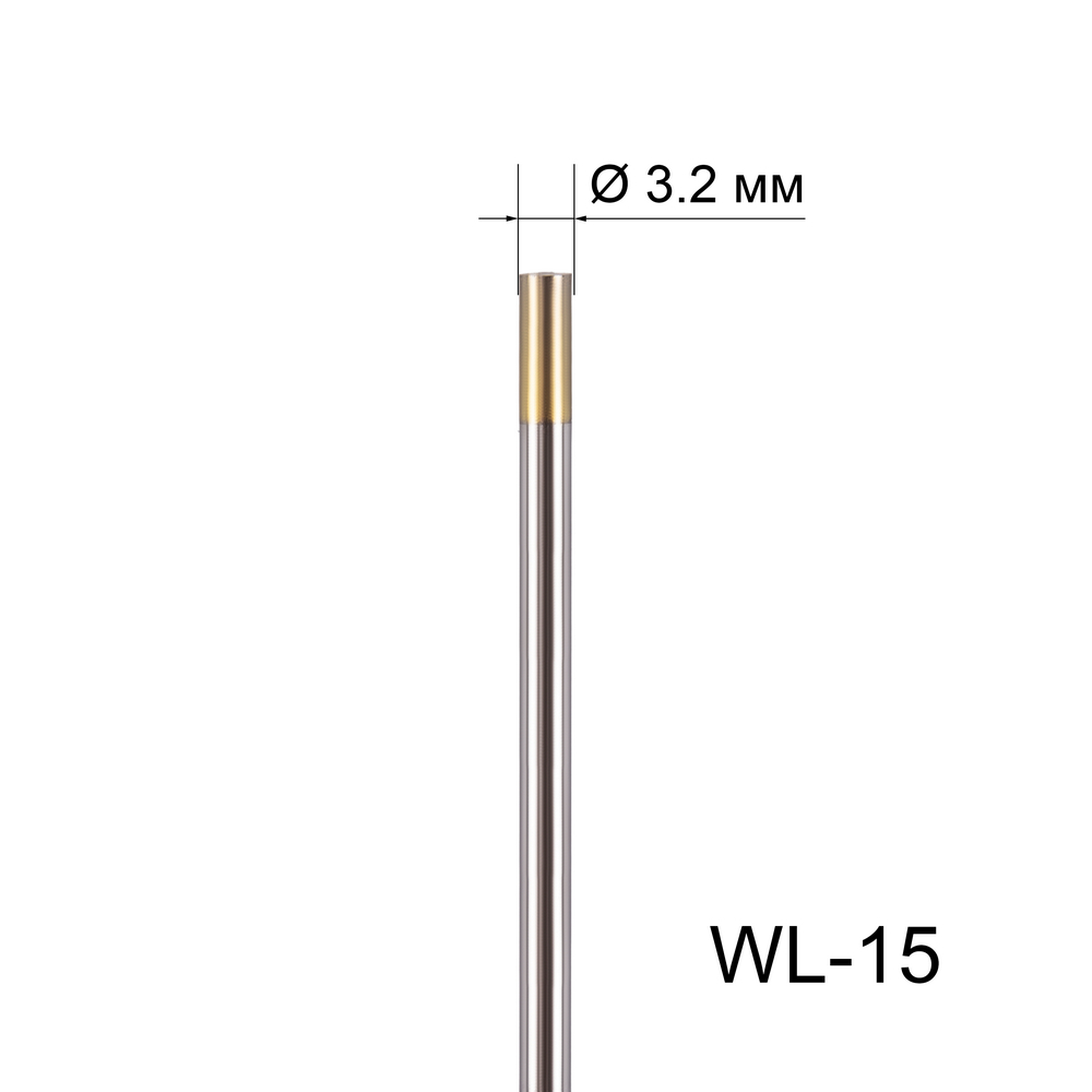 Вольфрамовый электрод марки WL-15 золотистого цвета предназначен для аргонодуговой сварки (TIG) на переменном (AC) и постоянном (DC) токе. Электрод легирован оксидом лантана (La₂O₃) для улучшения качественных свойств и повышения стойкости. Электроды WL-20 подходят для сварки алюминия, углеродистых и нержавеющих сталей на максимальных токах. Вольфрамовые электроды этой марки характеризуются хорошим поджигом и обеспечивают стабильное горение дуги как при высоких, так и при низких значениях сварочного тока.ПРОЧНАЯ УПАКОВКА: Вольфрамовые электроды поставляются в специальных пластиковых пеналах. Прочная и жёсткая упаковка выгодно отличается от картонной, т.к. исключает случайную деформацию электродов при доставке и в условиях хранения на складе.ПРЕИМУЩЕСТВА:Лёгкий поджигСтабильное горение дугиДольше сохраняют заточку электродаМеньше загрязняют шов вольфрамомФУНКЦИОНАЛЬНЫЕ ОСОБЕННОСТИ:ПОДБОР ВОЛЬФРАМОВОГО ЭЛЕКТРОДА: Вольфрамовые электроды разделяются по цвету наконечников в зависимости от сферы применения, что необходимо учитывать при выборе.ЗНАЧЕНИЯ ТОКА ДЛЯ ЭЛЕКТРОДОВ РАЗЛИЧНОГО ДИАМЕТРА: * в таблице приведены примерные допустимые значения