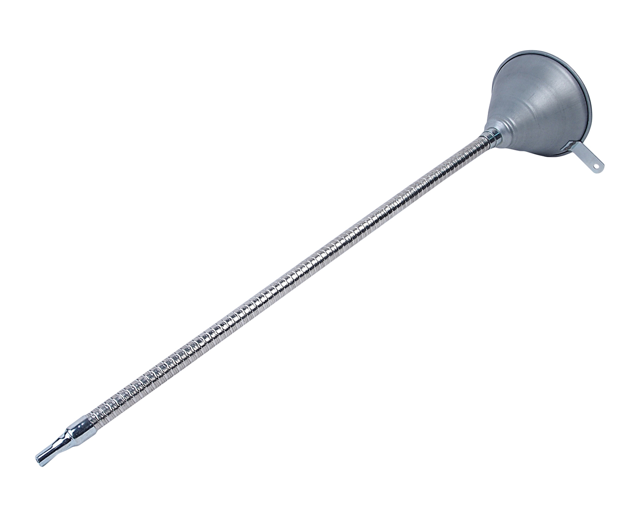 Металлическая воронка с гибким наконечником используется при заправке емкостей.