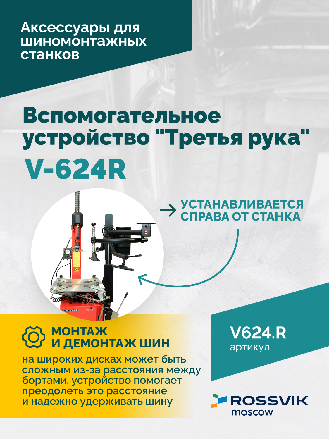 С этим устройством работа с жесткими и низкопрофильными шинами станет проще и быстрее. Опциональная роликовая система, устанавливаемая на станок V624, V626, обеспечивает дополнительную поддержку и точность при монтаже и демонтаже шин, что значительно сокращает время обслуживания и повышает качество работы.